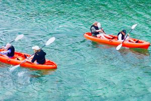 →到着 カヤック・SUPの使い方や遊ぶエリアの説明をします。最初はガイドと一緒に浅瀬で練習を始めてから、自由時間となります。1時間20分ぐらい。→ツアー終了 車で移動