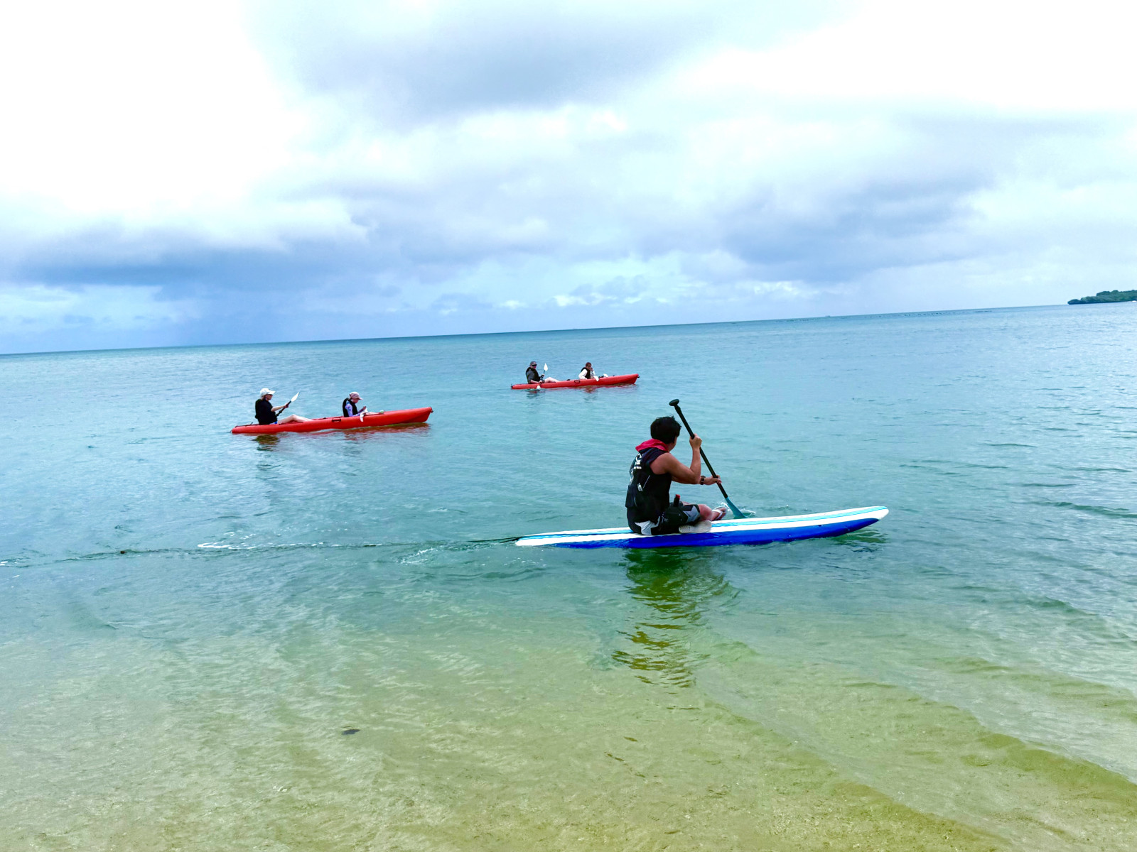 →到着 カヤック・SUPの使い方や遊ぶエリアの説明をします。最初はガイドと一緒に浅瀬で練習を始めてから、自由時間となります。1時間20分ぐらい。→ツアー終了 車で移動